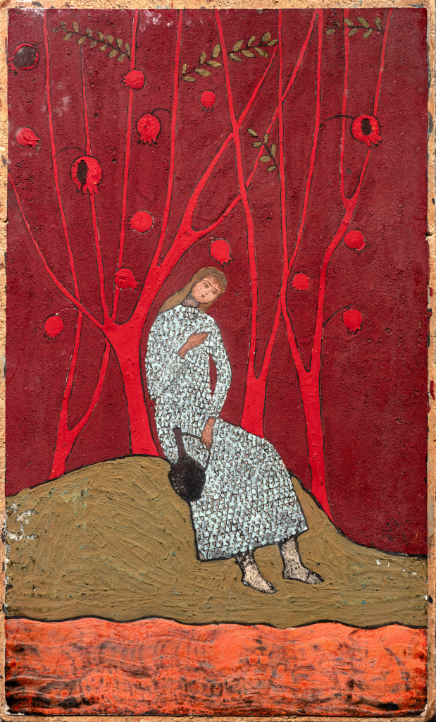 Berdzenishvili’s creative output encompassed both easel painting (Eteri’s Song, At the Old Spring, Landscapes of Svaneti) and graphic art and book illustration. A special place in her oeuvre belongs to the themes of Georgian folk tales and folklore. Her illustrations for The Martyrdom of Saint Shushanik (1975–1976) hold particular cultural significance within her artistic heritage.