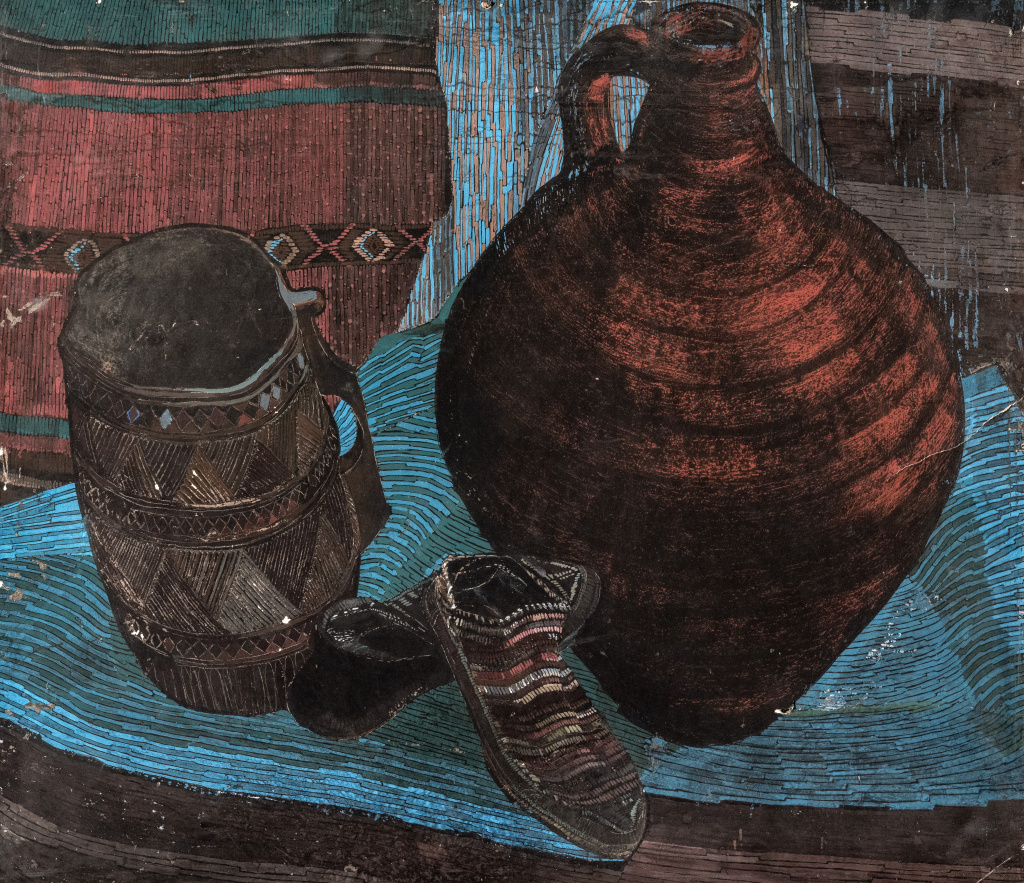 Bela Berdzenishvili’s artistic legacy is a multifaceted, stylistically distinctive phenomenon in the history of Georgian art. Her works are distinguished by a unique sense of form and color, as well as a refined rhythmic balance of line and composition. The artist’s thinking combines painterly and graphic qualities, lending her creations a simultaneously monumental and narrative dimension.
